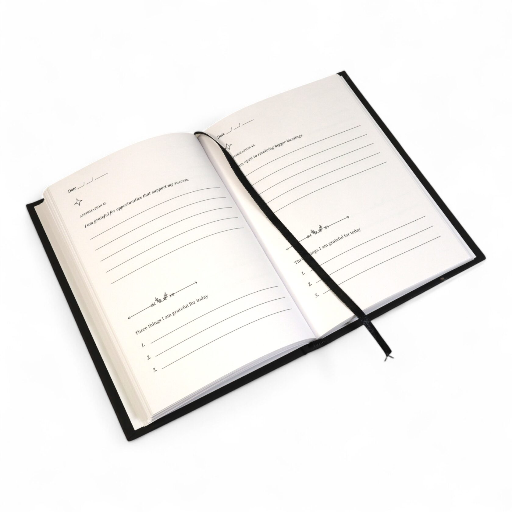 Wrapped in a premium black hardbound cover with gold leaf detailing, it feels intentional, powerful, and luxurious – just like the energy of abundance it helps you cultivate.