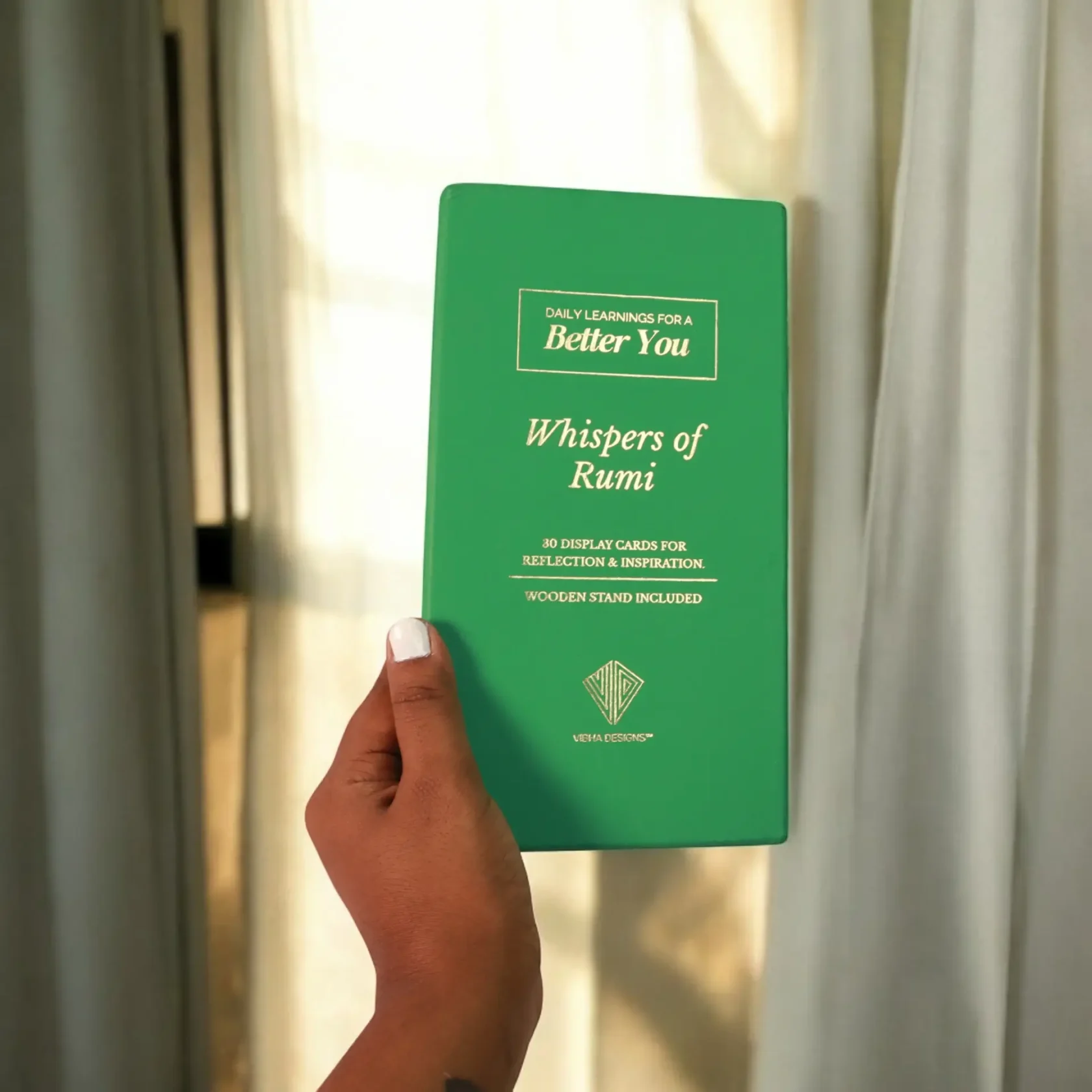 • Beautiful Wooden Display Stand: The set comes with an elegant wooden display stand that lets you easily showcase your daily affirmation cards, adding a touch of beauty to your home or office.