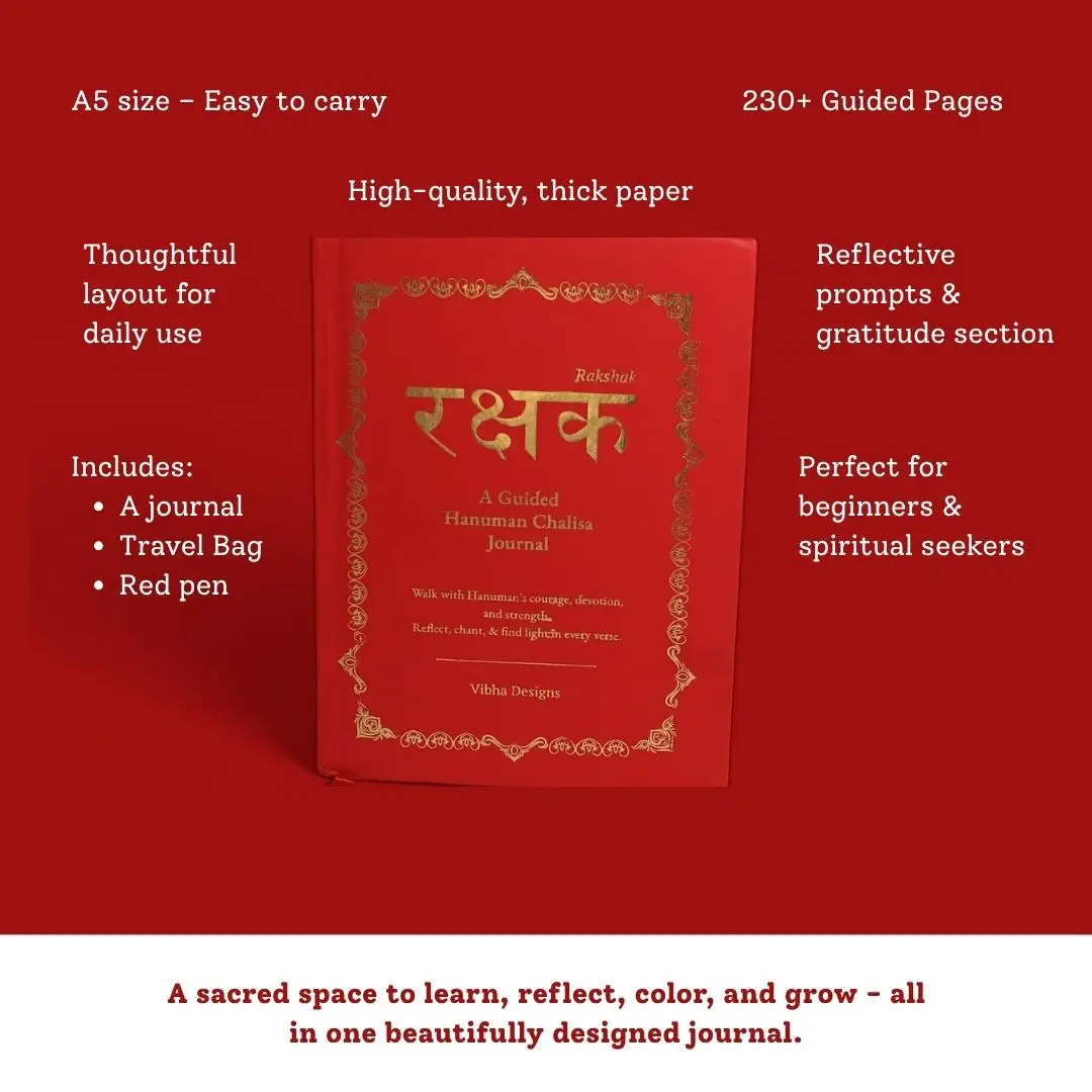 It is a thoughtfully curated journal taking one deeper in the journey with Hanumanji. Its broken up into smaller chalisas, helping one understand the indepth meaning of the Hanuman Chalisa as well as oneself. The affirmations, tips and journalling prompts make it easy to go within. Thank you for creating this 🫶